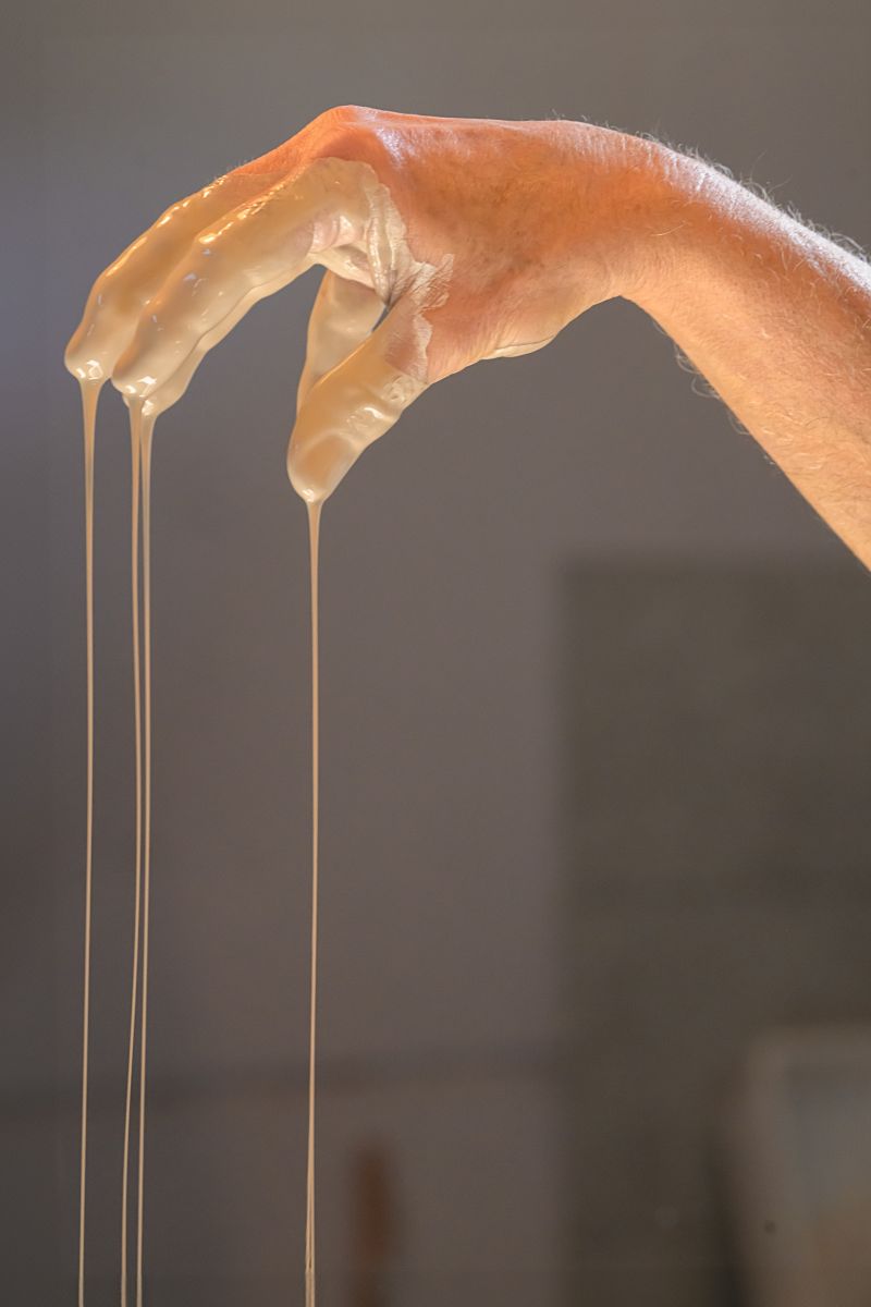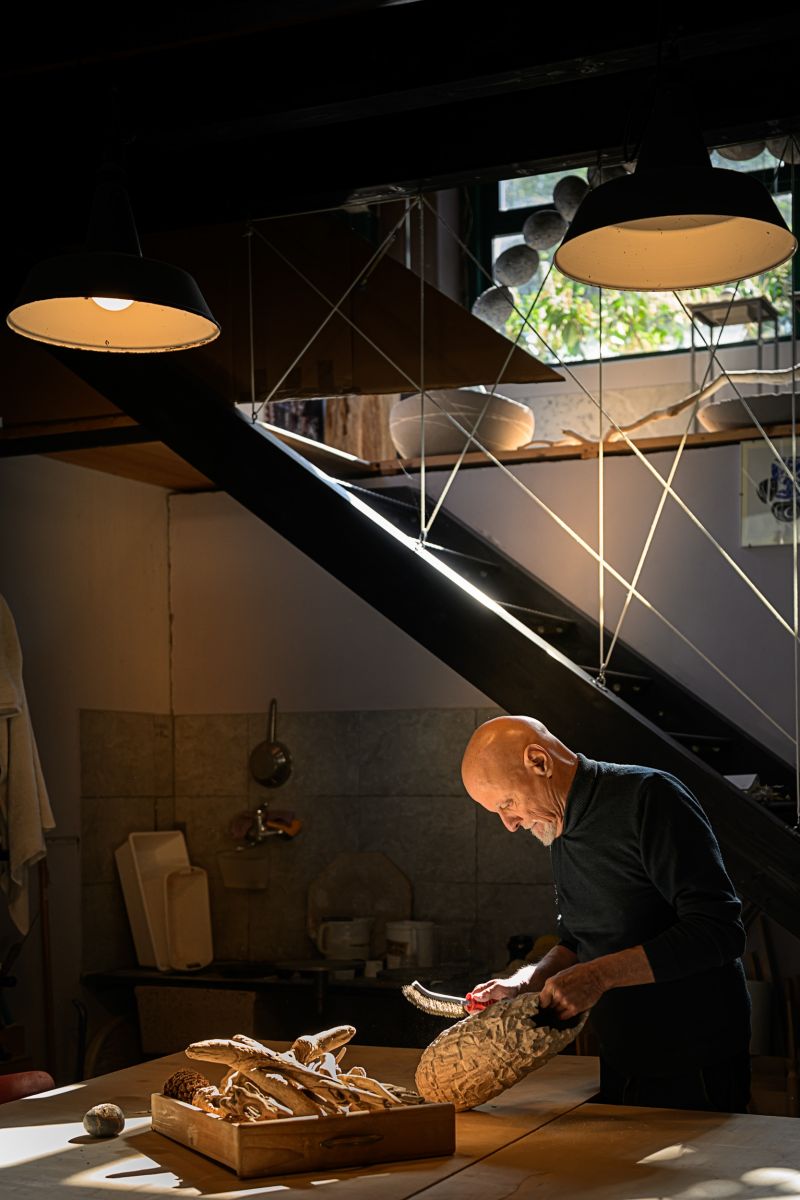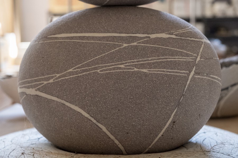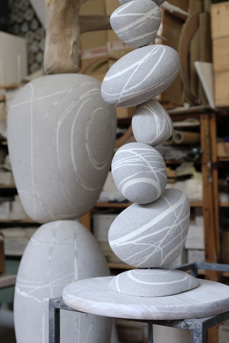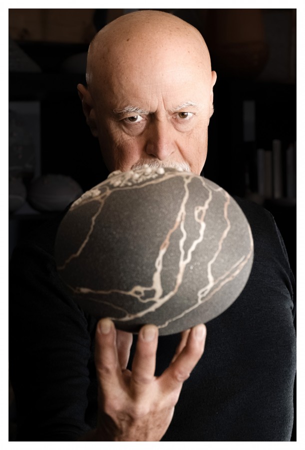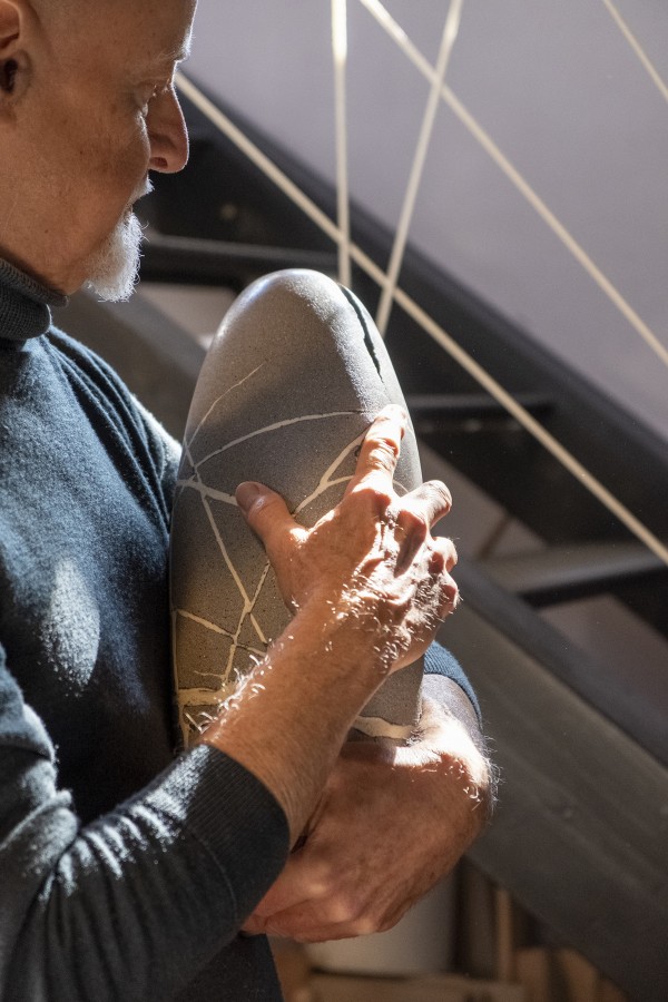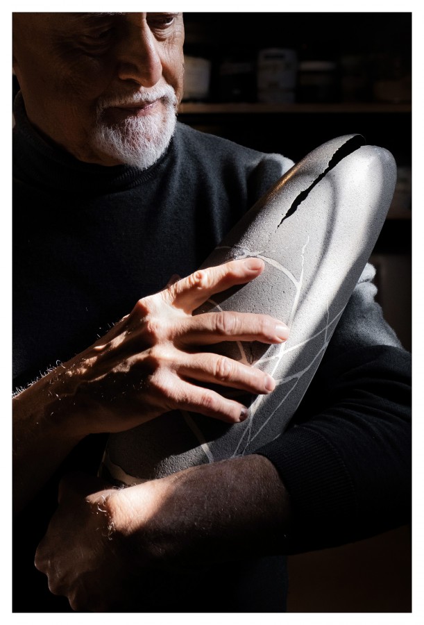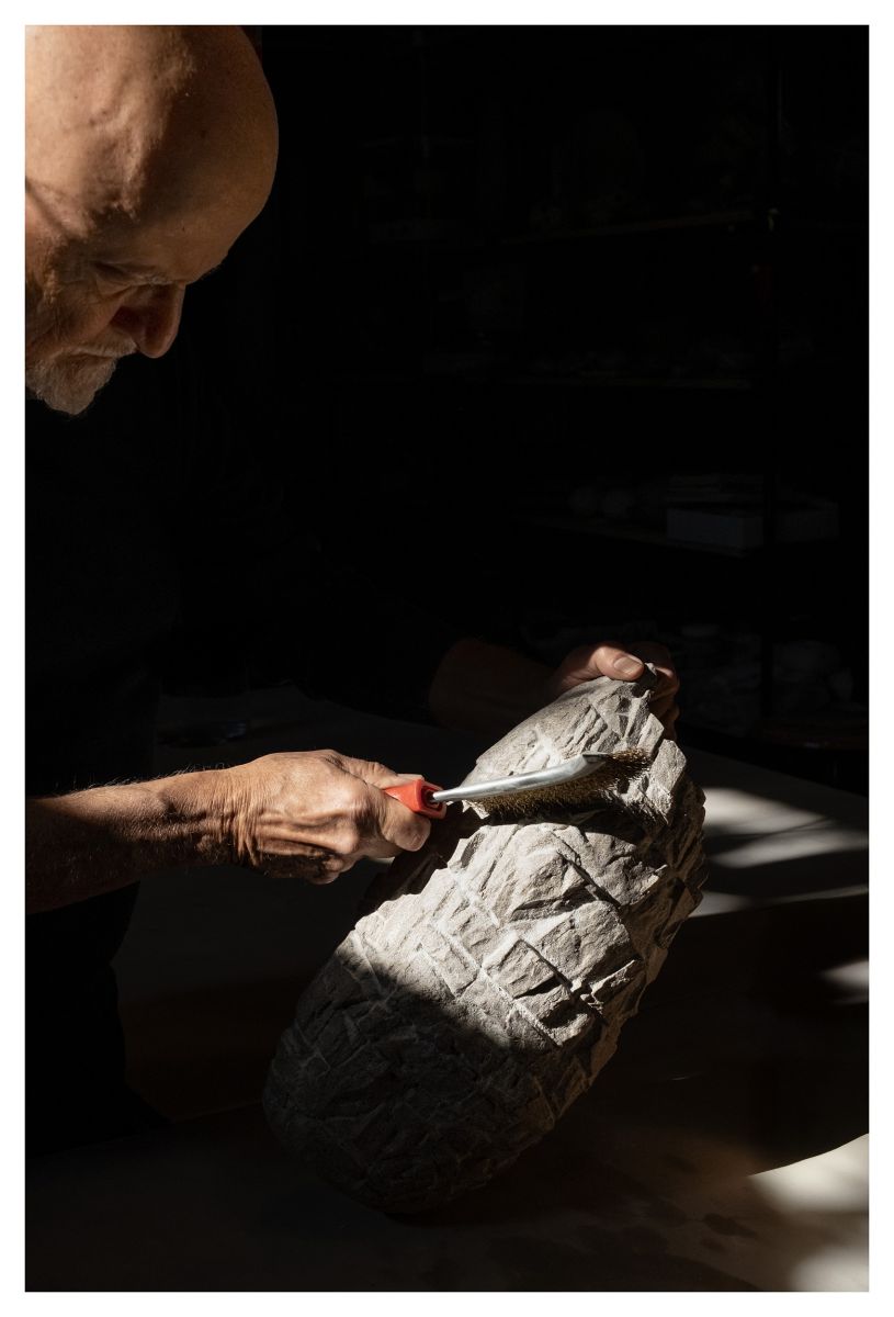 Illustrazione da parte di Alfredo Gioventu del rapporto tra la sua arte e la natura, in particolare i caratteristici sassi della spiaggia di Renà, che hanno ispirato l'artista nella realizzazione dei famosi "sassi galleggianti"